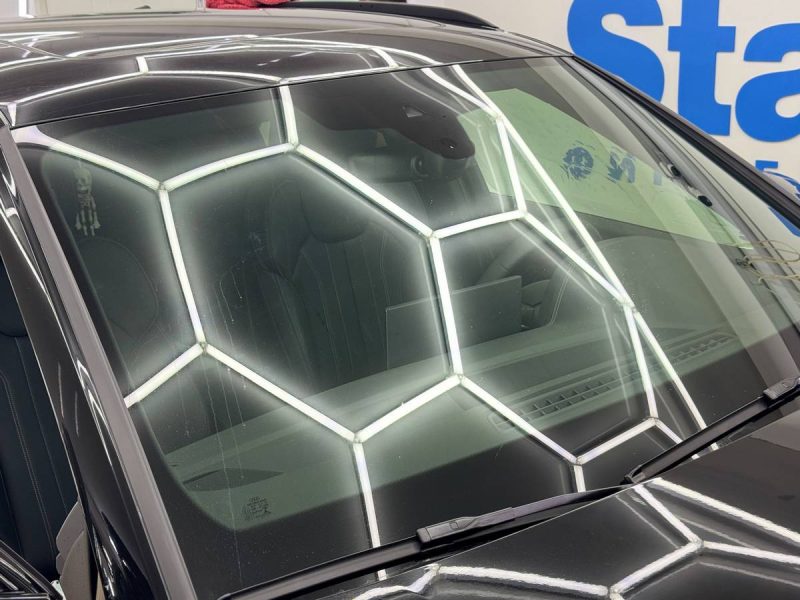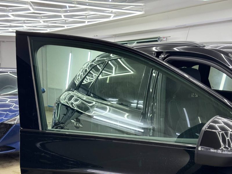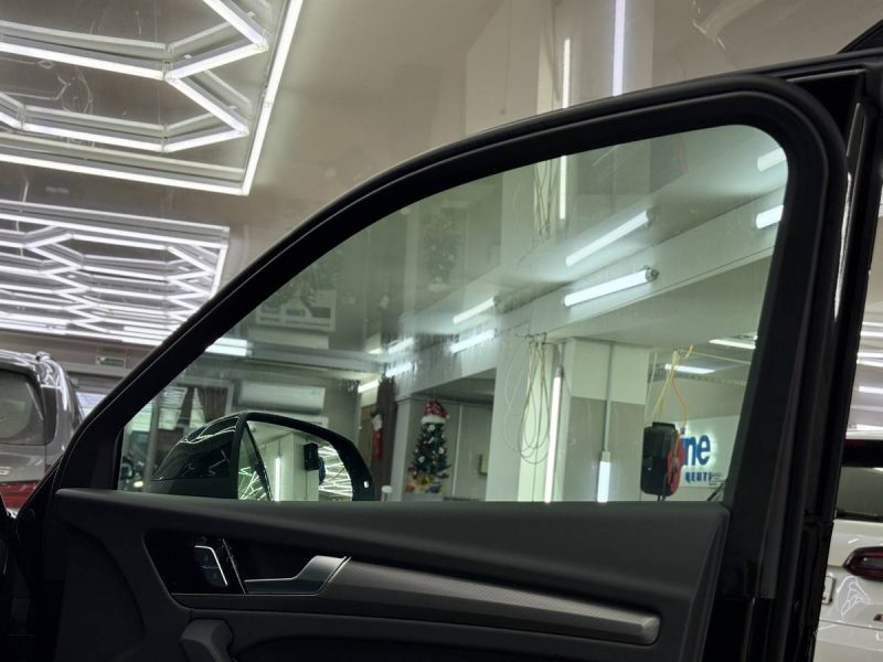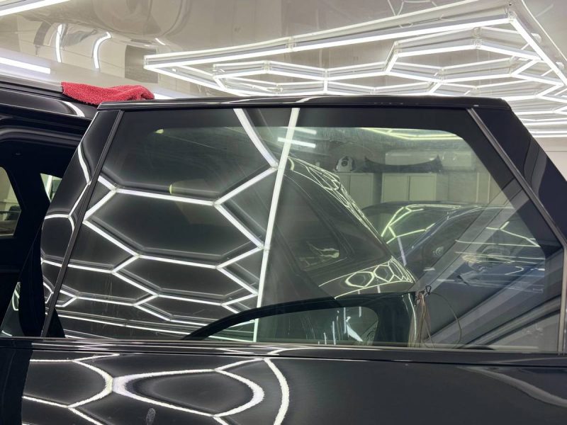 Ещё сделали тонировку. Для задней полусферы использовали плёнку LLumar 85% затемнения, а для передней – зелёную атермальную плёнку.