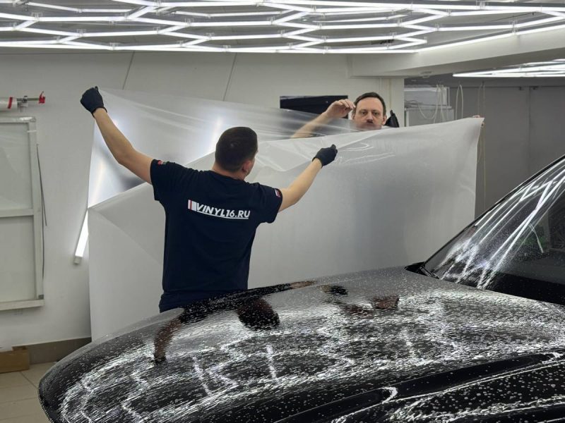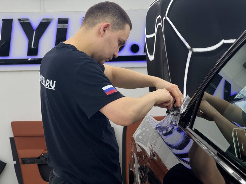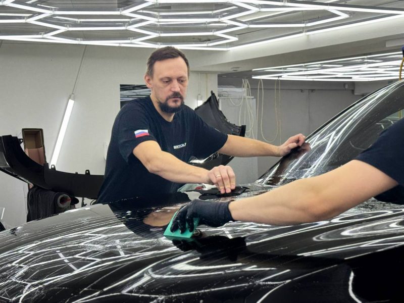 Далее мы сделали частичных антихром чёрной глянцевой плёнкой – элементы вокруг стекол и зеркала.