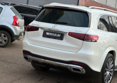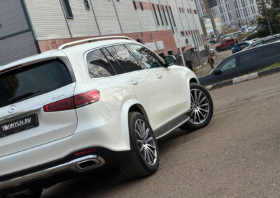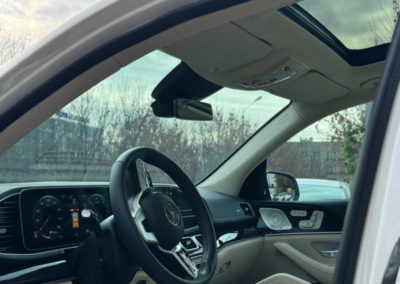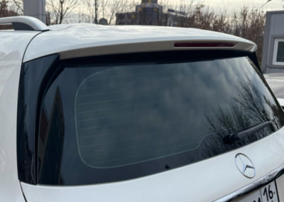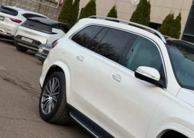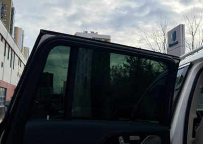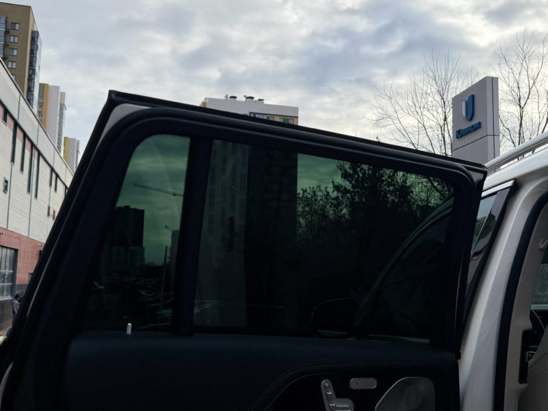 Сделали полное бронирование кузова, а также тонировку передней полусферы атермальной плёнкой голубого оттенка и задней полусферы LLumar 95% затемнения.