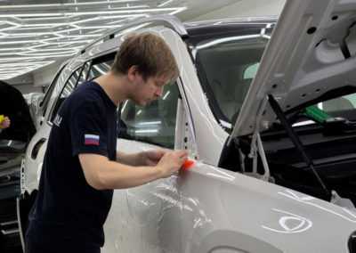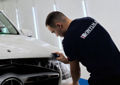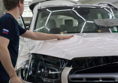 В работе для оклейки использовали глянцевую полиуретановую плёнку. Она совершенно прозрачна, а значит после нанесения абсолютно невидима глазу, но при этом обеспечивает глянцевый блеск покрытия.