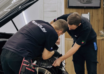В работе использовали глянцевую полиуретановую плёнку. Она абсолютно прозрачна и является самой надёжной защитой ЛКП на сегодняшний день.